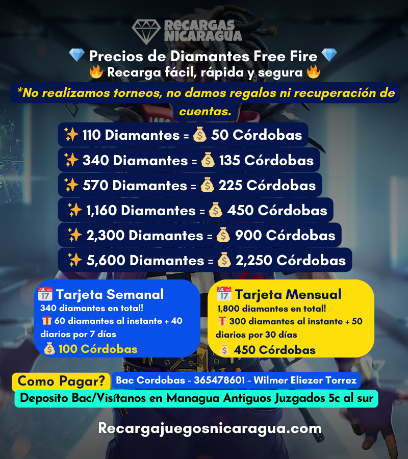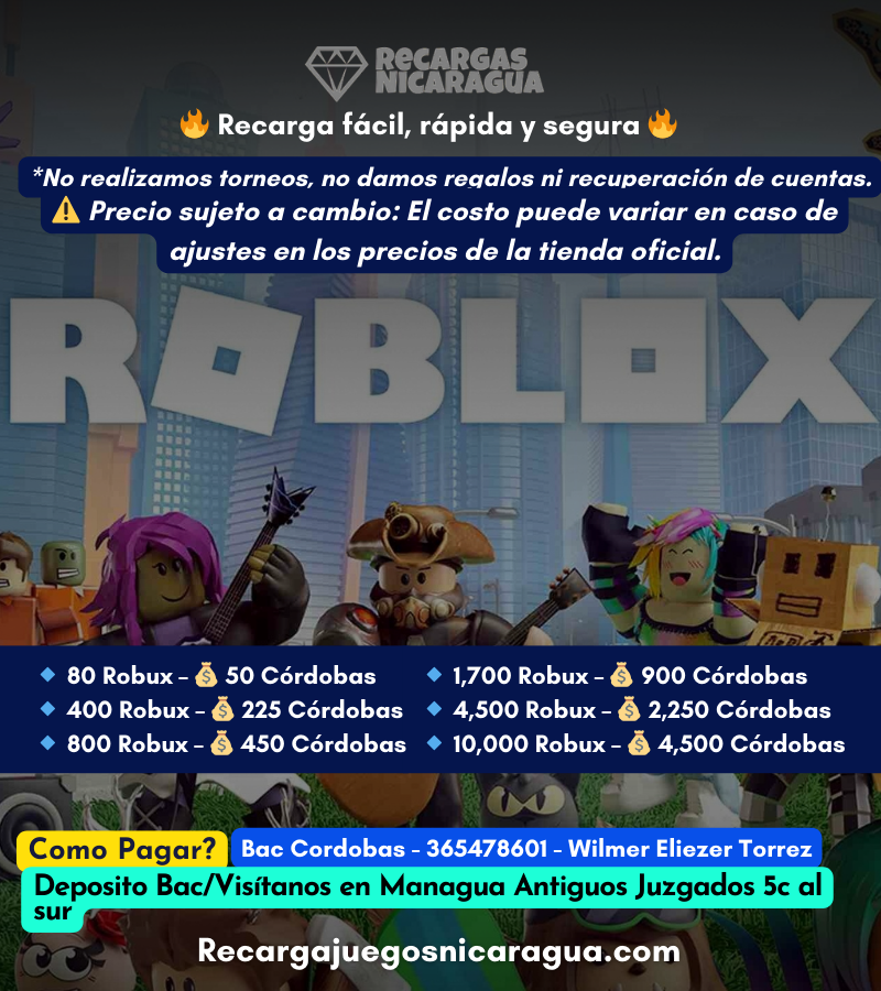 El precio por cada dólar en cuenta es de 45 córdobas nicaragüenses a partir de los 3$, válido para cualquier compra en cualquier paquete de cualquier juego.